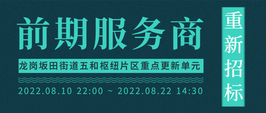 ◆ 2022年8月10日,深圳公共資源交易中心再次發(fā)布關(guān)于公開征求《深圳市龍崗區(qū)坂田街道五和樞紐片區(qū)重點(diǎn)更新單元前期服務(wù)》招標(biāo)公告,投標(biāo)截止時(shí)間:2022年08月22日 14:30:00(北京時(shí)間) 。