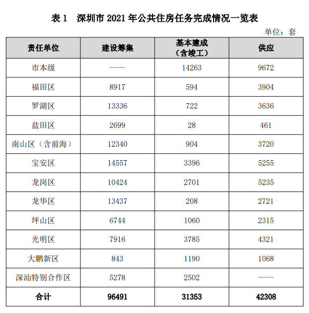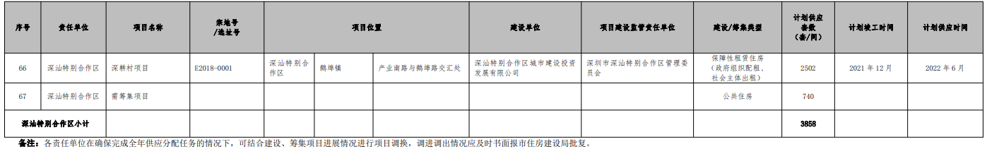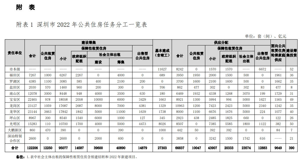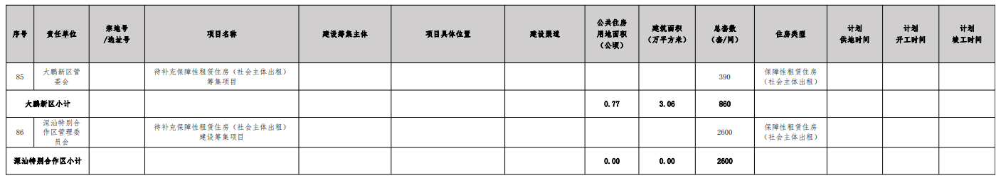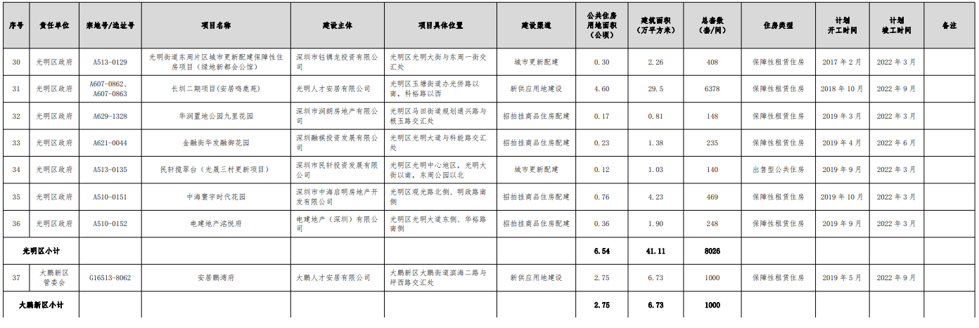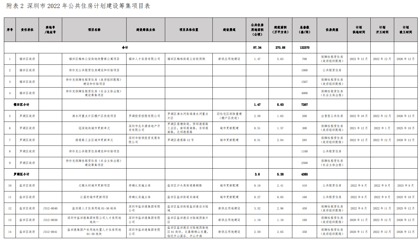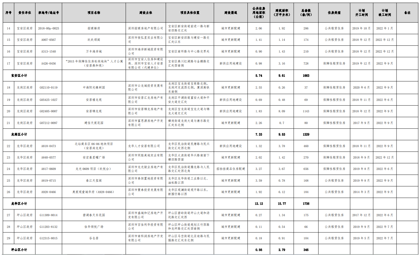 深圳市 2022 年公共住房計劃建設(shè)籌集(含竣工)項目表(截圖)