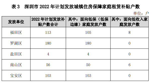 深圳市 2022 年公共住房計劃供應(yīng)分配項目表(截圖)