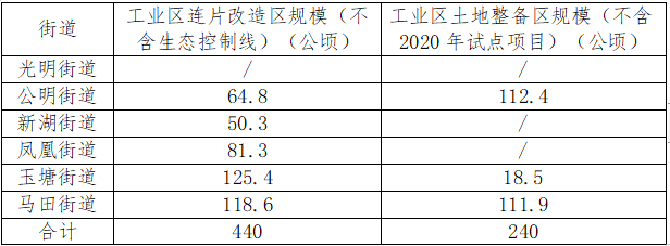 表 1 各街道工業(yè)區(qū)連片改造區(qū)及土地整備區(qū)規(guī)模