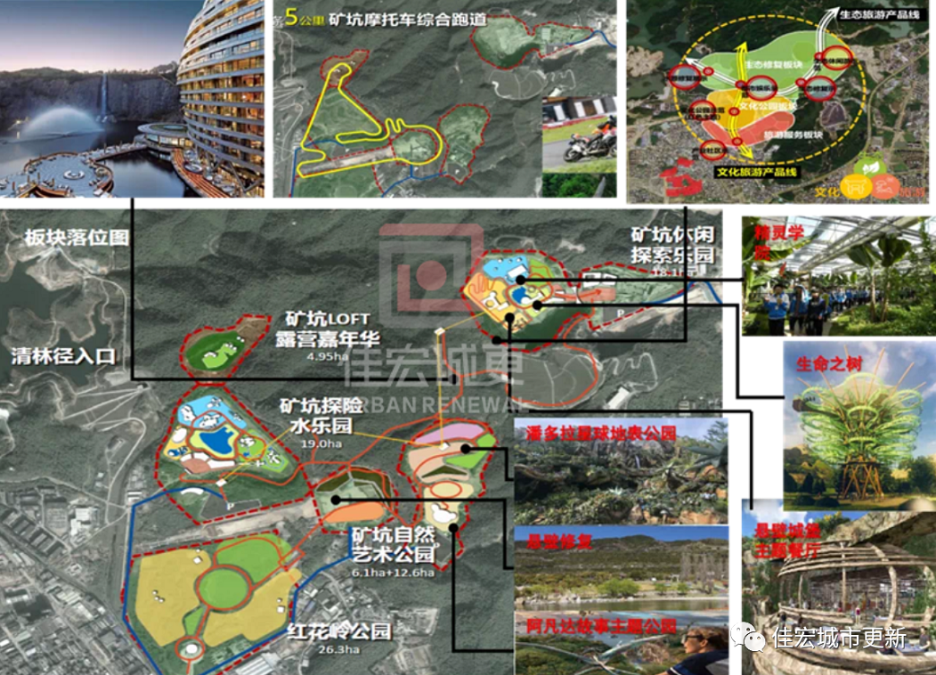 通過引進(jìn)華僑城團(tuán)隊(duì),提出“歡樂玄圃”的主題,以礦坑為特色空間載體,從生態(tài)修復(fù)、主題塑造、都市文旅等維度出發(fā),打造首個(gè)集都市娛樂、生態(tài)休閑、碳中和功能、文化藝術(shù)于一體的大灣區(qū)新型低碳文旅示范區(qū),引領(lǐng)文旅新風(fēng)潮,探索新時(shí)期礦坑生態(tài)修復(fù)與綜合利用新模式,打造龍崗“三生融合”新示范。