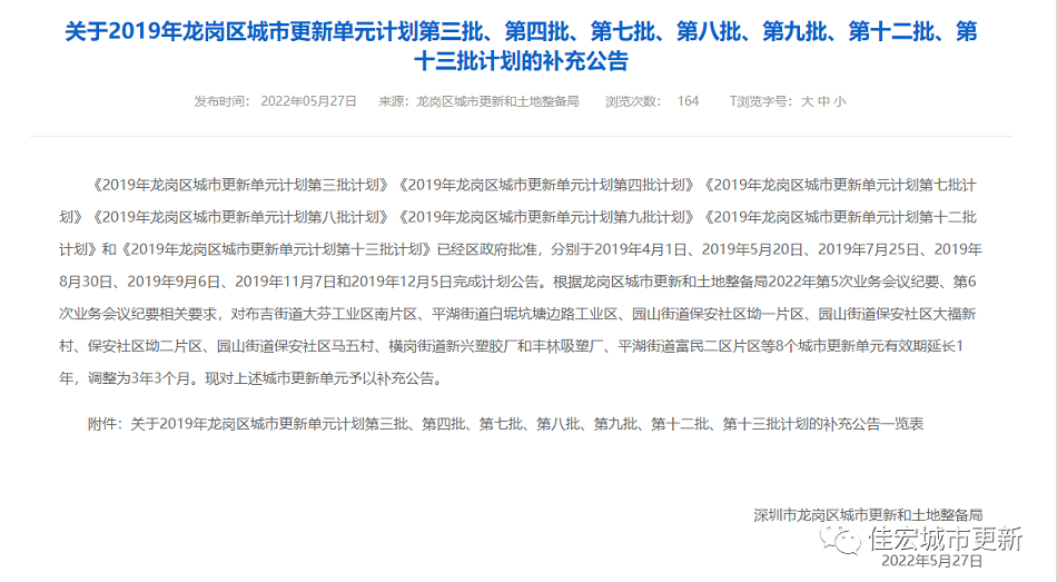 2019年龍崗區(qū)城市更新單元計劃第三批、第四批、第七批、第八批、第九批、第十二批、第十三批計劃的補充公告