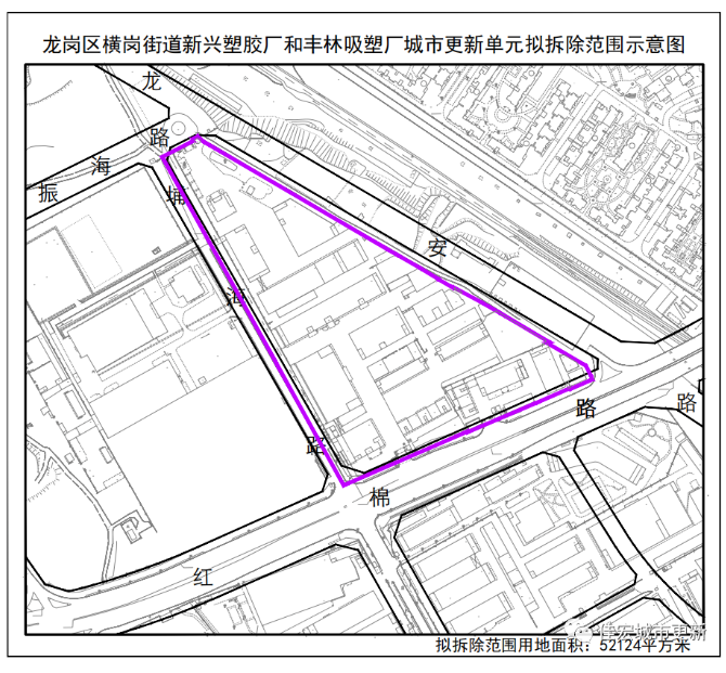 項目位于深圳市位于龍崗區(qū)橫崗街道,項目擬拆除重建范圍面積為52124㎡,擬更新方向為新型產(chǎn)業(yè)、普通工業(yè)功能(更新后的普通工業(yè)廠房面積不低于現(xiàn)狀面積)。擬拆除重建用地范圍內(nèi)應(yīng)落實用地面積不小于15116平方米公共利益用地及發(fā)展備用地(其中規(guī)劃主導(dǎo)功能為普通工業(yè)的發(fā)展備用地用地面積不低于10614 平方米)。在更新單元規(guī)劃階段落實工業(yè)區(qū)塊線等相關(guān)法定規(guī)劃的管控要求。