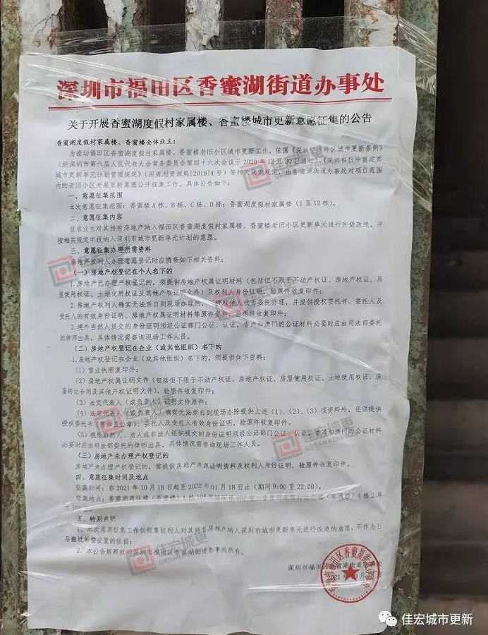 1、2021年10月18日由香蜜湖街道辦開展意愿征集工作,意愿征集截止時間為2022年1月18日,為期三個月;