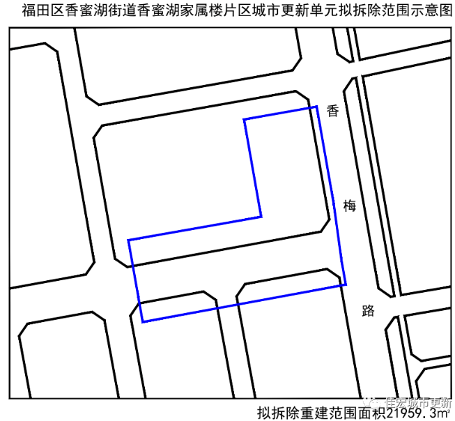 福田區(qū)香蜜湖街道香蜜湖家屬樓片區(qū)城市更新單元東臨香梅路,南近深南大道,西靠香蜜湖度假村,北望紅荔路,更新單元擬拆除范圍用地面積21959.3平方米,現(xiàn)狀建筑總面積37697,現(xiàn)狀容積率1.72,項目范圍涉及三個宗地,由香蜜湖度假村家屬樓舊住宅區(qū)和香蜜樓商住樓組成,涉及權(quán)利主體共438戶,申報主體為香蜜湖街道辦事處。