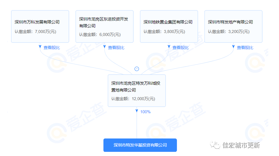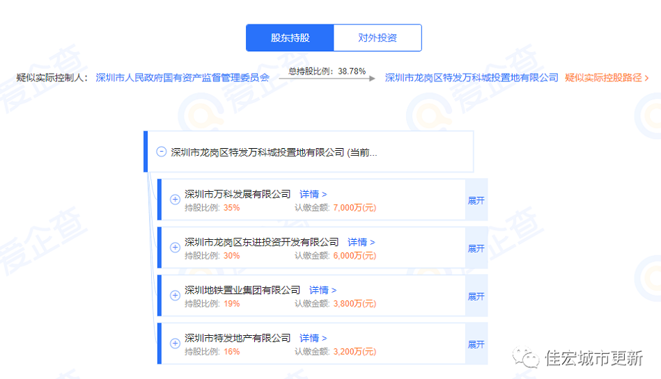 經(jīng)工商信息查詢,深圳市特發(fā)華基投資有限公司四大股東為:萬(wàn)科(35%)、龍崗區(qū)東進(jìn)投資有限公司(30%)、地鐵置業(yè)集團(tuán)(19%)、特發(fā)地產(chǎn)(16%)。