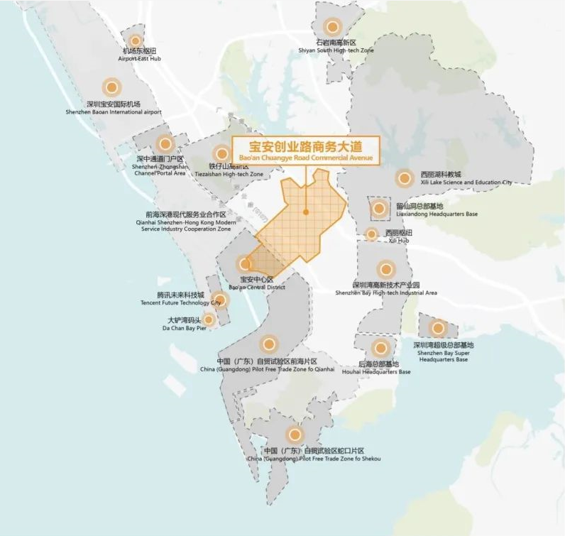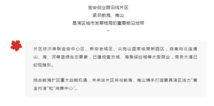創(chuàng)業(yè)路沿線片區(qū)是串聯(lián)寶安中心區(qū)、尖崗山新興產(chǎn)業(yè)聚集地的重要城市發(fā)展軸