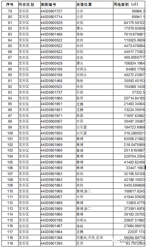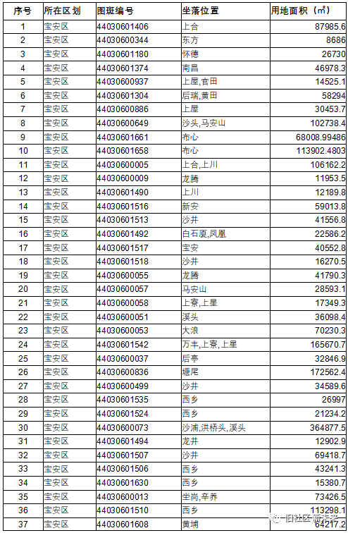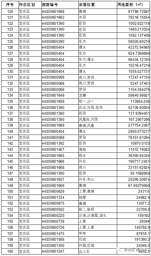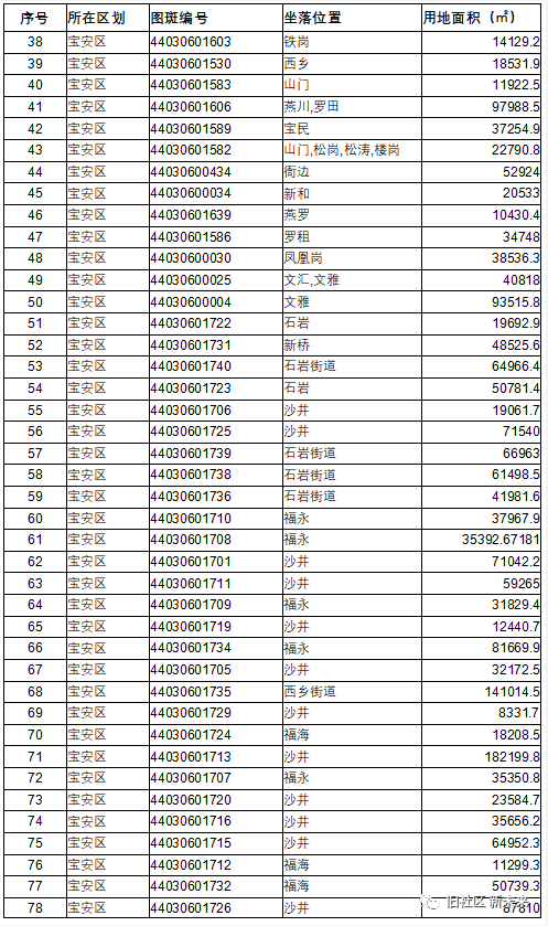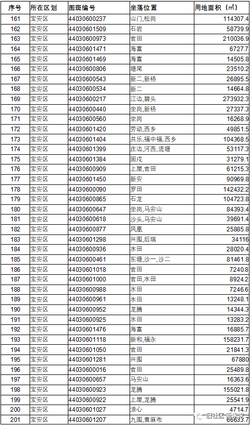 深圳市“三舊”改造標(biāo)圖建庫(kù)地塊信息一覽表